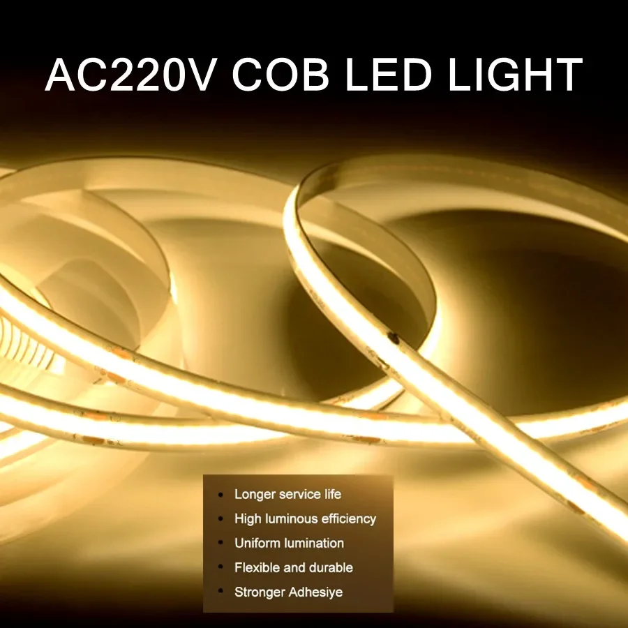 220V COB LED Strip Light Flexible Tape Lights Smart IC No Need Driver High Bright 240 LEDs Linear Lighting RA95 Warm White 1-5m