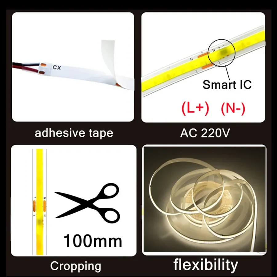1. Product Type: AC220V 230V 240V COB LED Strip No-Transformer
