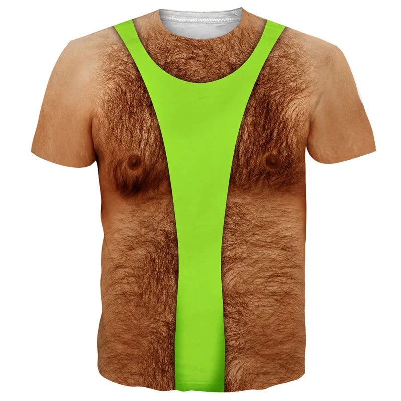 Funny Hairy Chest Graphic T Shirt Men 3d Printed Muscle Fake Abs Short Sleeve T-shirt Summer Spring Cosplay Costume Tee Shirts